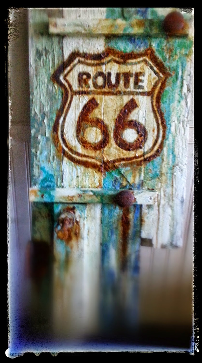 Old Broken rakes, curly willow and bird houses adorn the cabinets.